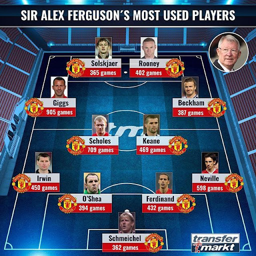 Instagram의 Transfermarkt님 So Many Legends And A Legendary Coach Manchesterunited Mufc Manu Sir Alex Ferguson Beckham Ferdinand