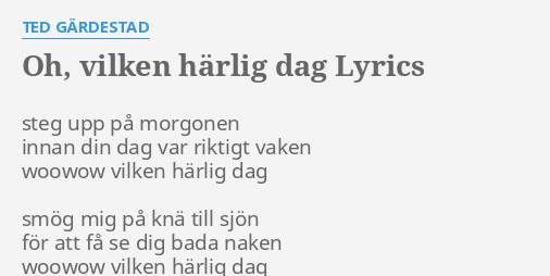 Oh Vilken Harlig Dag Lyrics By Ted Gardestad Steg Upp Pa Morgonen